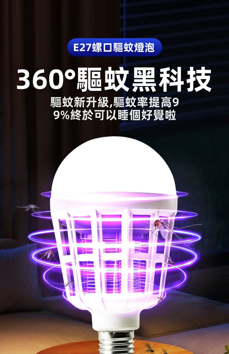 12分鐘前限時搶購 LED照明滅蚊燈E27螺口一擰即裝,UV紫光誘蚊,節能LED無頻閃,護眼超安全,居家戶外兩相宜 - 3入組-【均價399】NT$1199