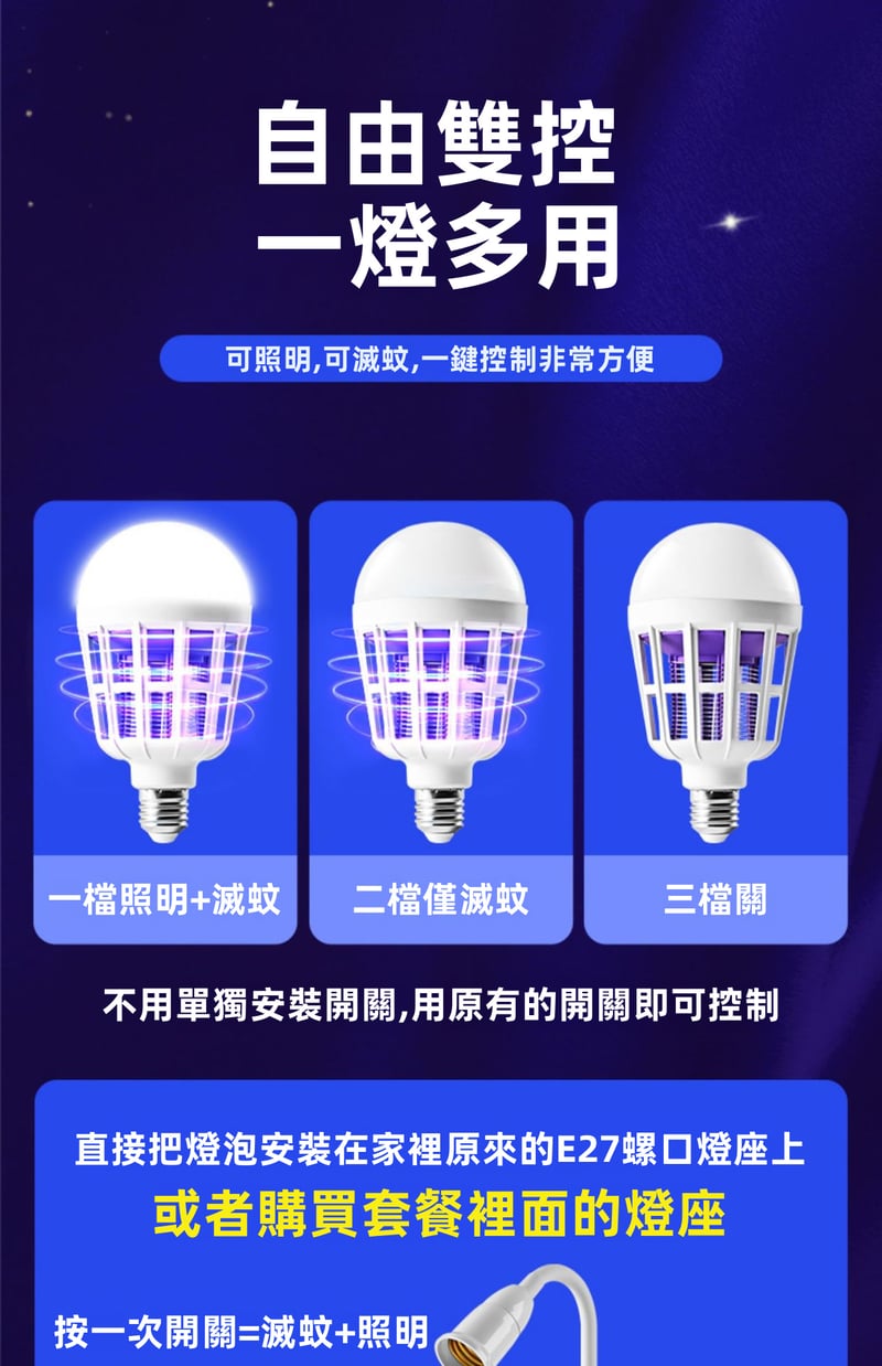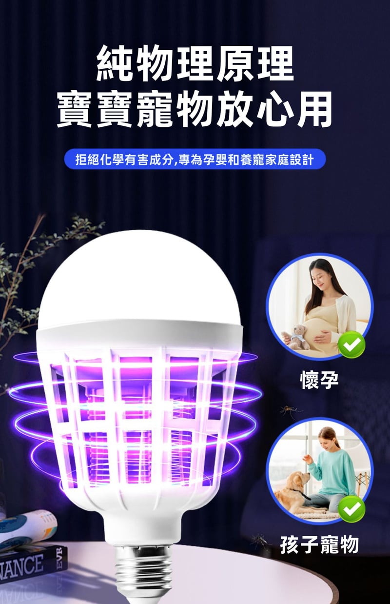 7分鐘前限時搶購 LED照明滅蚊燈E27螺口一擰即裝,UV紫光誘蚊,節能LED無頻閃,護眼超安全,居家戶外兩相宜 - 2入組-【買一送一】NT$999